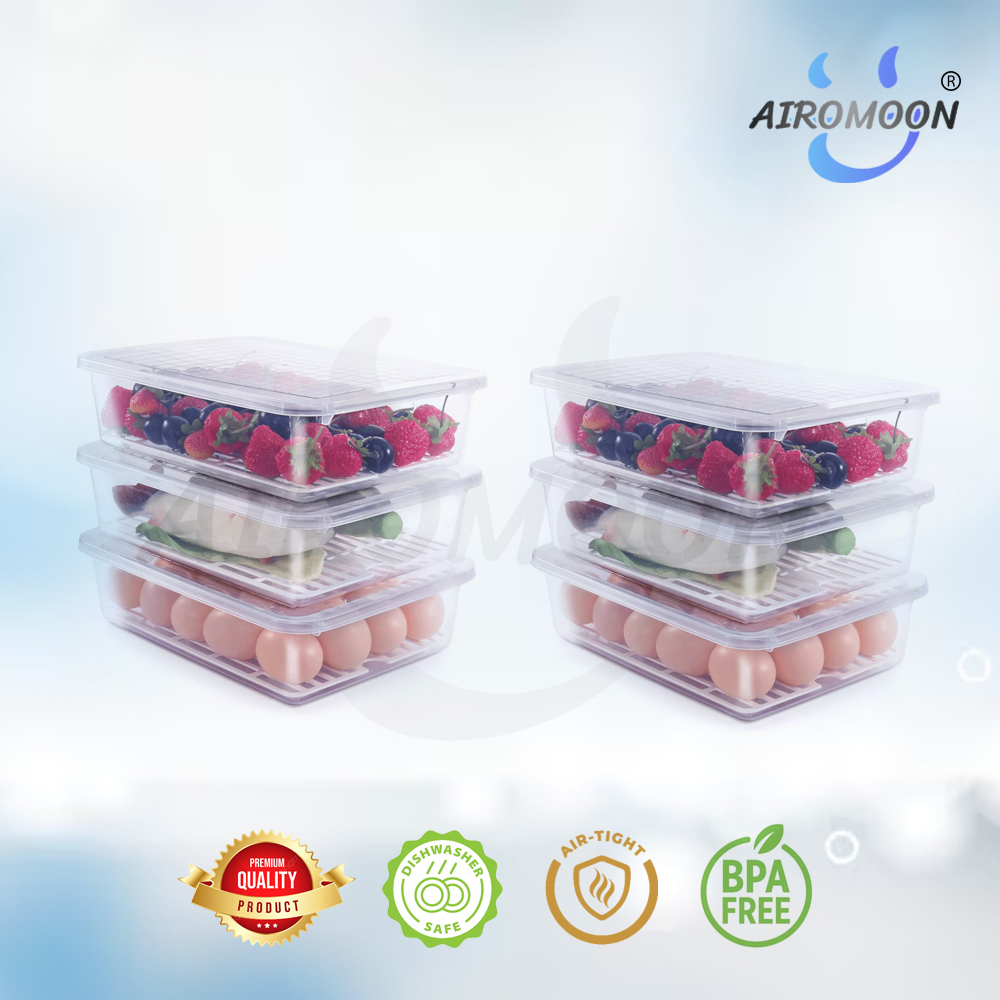 AIROMOON Fridge Container 2500 ML Pack of 6, Vegetables Boxes, Multipurpose Storage Box