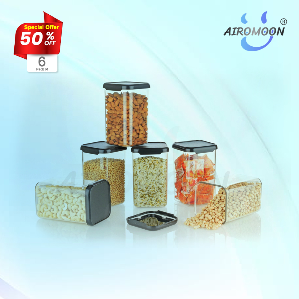 AIROMOON Lock & Fresh Container 600 ML Pack of 6, Rice, Wheat, Multipurpose Storage Box