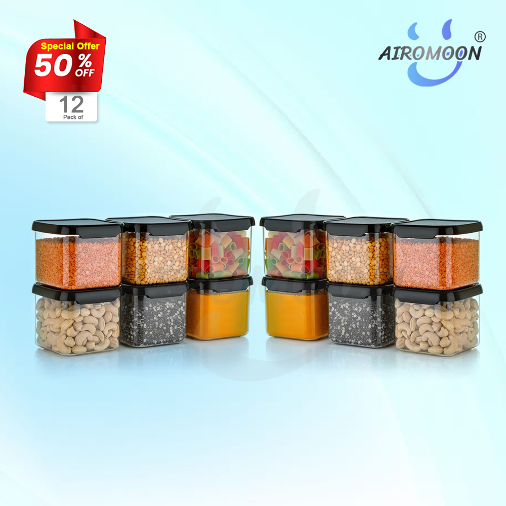 AIROMOON Lock & Fresh Container 600 ML Pack of 12, Rice, Wheat, Multipurpose Storage Box