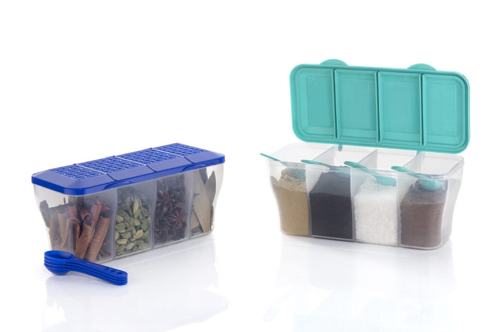 AIROMOON Spice Box 1100 ML Pack of 1, Spice Rack, Multipurpose Storage Box With 4 Container