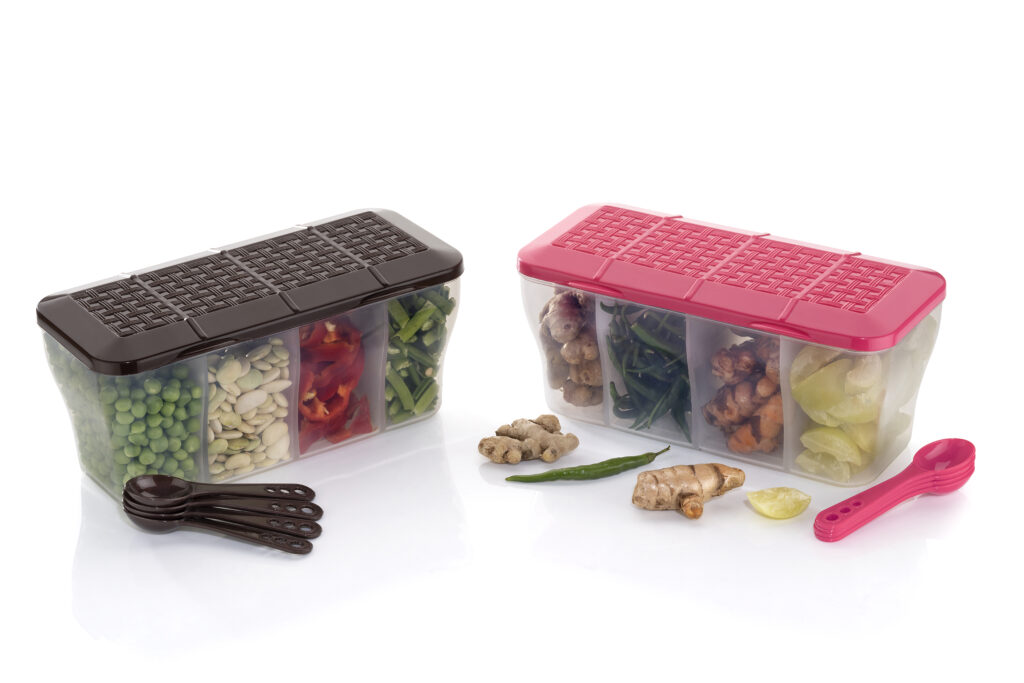AIROMOON Spice Box 1100 ML Pack of 2, Spice Rack, Multipurpose Storage Box With 4 Container